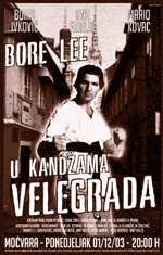 KANDŽAMA VELEGRADA Prvi i drugi dan prosinca u Zagrebu je obilježila svjetska premijera najnovijeg filma sinjskog kung fu majstora i najveće akcijske zvijezde domaćeg filma Borisa Ivkovića - Bore Leeja. Glamurozan dolazak glavnih glumaca (u nekoliko spačeka), crveni tepih, fotografi, kamere i ogroman broj fanova. Parodija na holivudske premijere je bila više nego uspješna. Prvi dan je bio rasprodan, a procjenjuje se da je veći dio publike na kraju ostao bez karte i tako propustio mogućnost da tu večer pogleda film. Zato je projekcija ponovljena sljedeći dan, kada je posjećenost bila znatno manja i više je podsjećala na standardnu filmsku večer u Močvari.